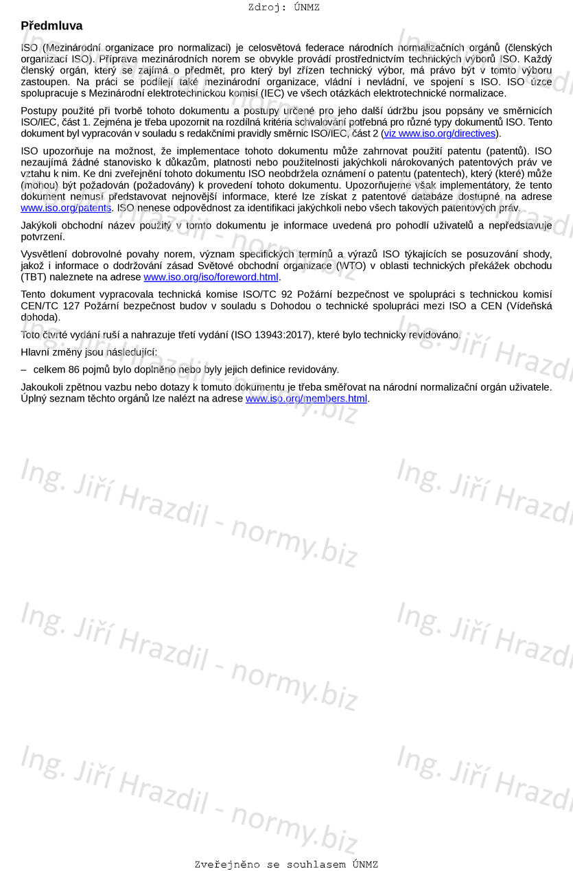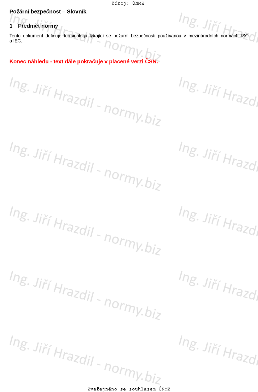 Tento dokument definuje terminologii týkající se požární bezpečnosti používanou v mezinárodních normách ISO a IEC.