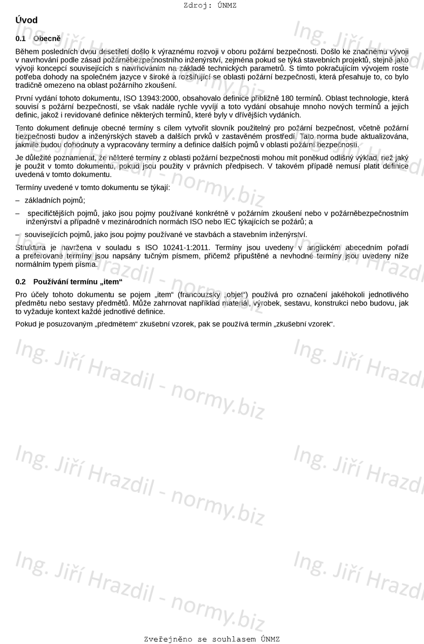 - specifičtějších pojmů, jako jsou pojmy používané konkrétně v požárním zkoušení nebo v požárněbezpečnostním inženýrství a případně v mezinárodních normách ISO nebo IEC týkajících se požárů; a