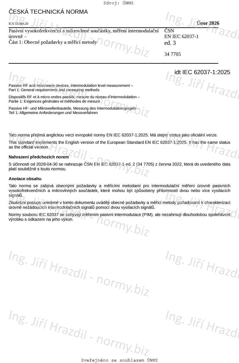 | Označení | ČSN EN IEC 62037-1 ed. 3 (347705) |