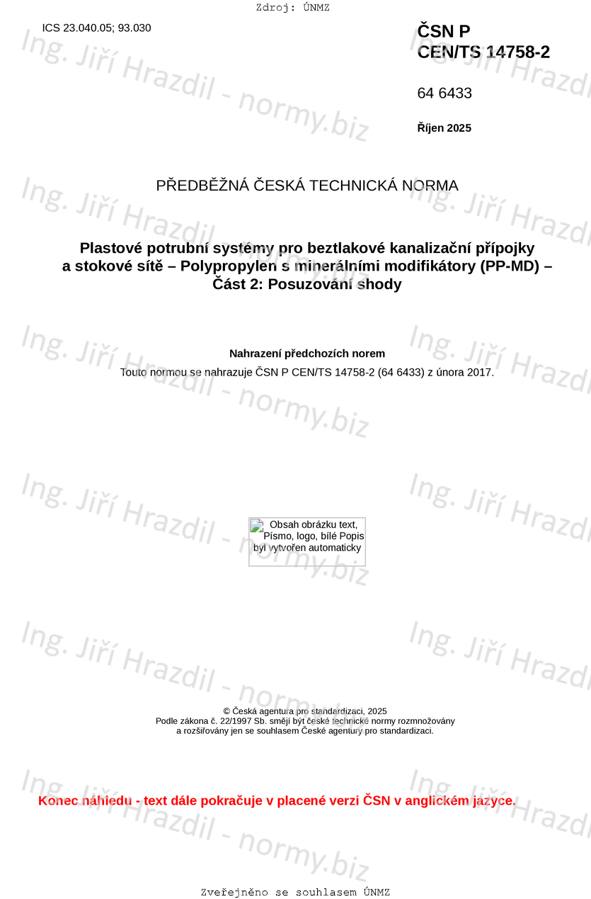 Označení | ČSN P CEN/TS 14758-2 (646433) |