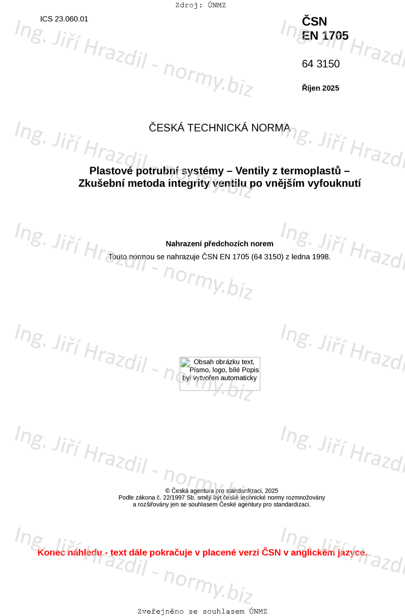 | Tato norma nahradila | ČSN EN 1705 (643150) z ledna 1998 |