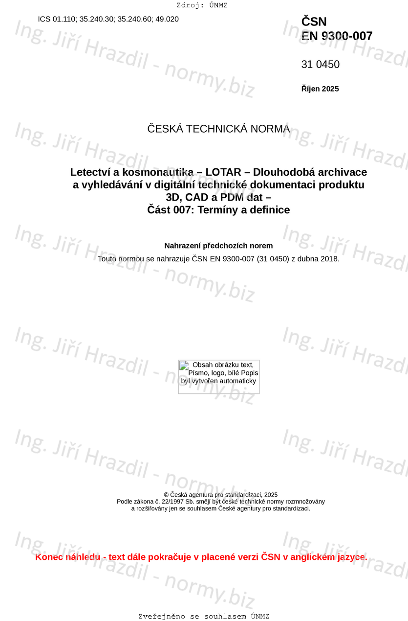Tato norma nahradila | ČSN EN 9300-007 (310450) z dubna 2018 |