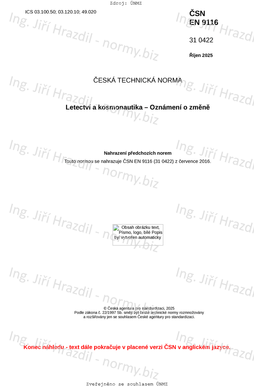 Tato norma nahradila | ČSN EN 9116 (310422) z července 2016 |