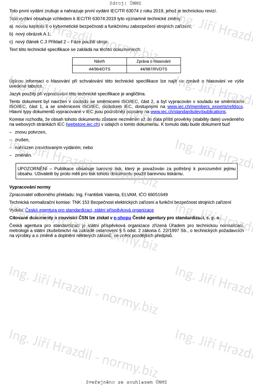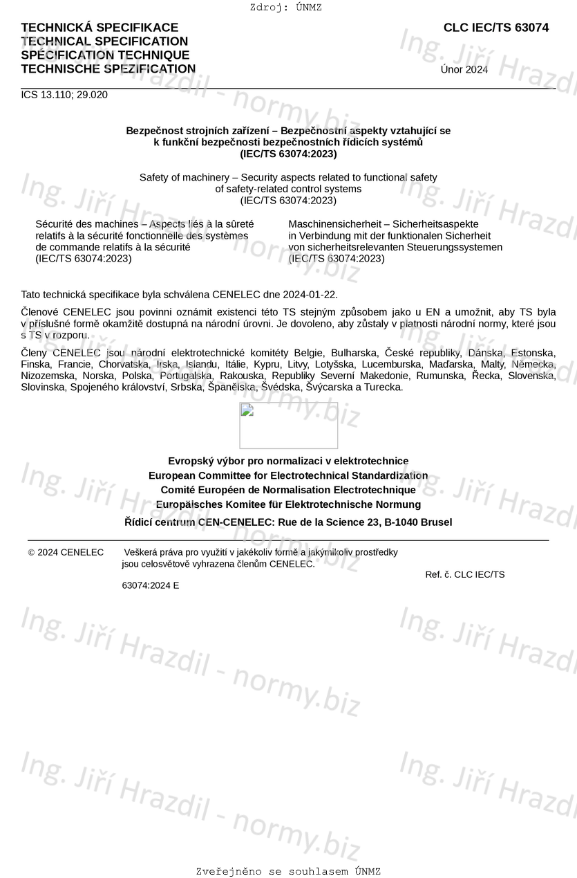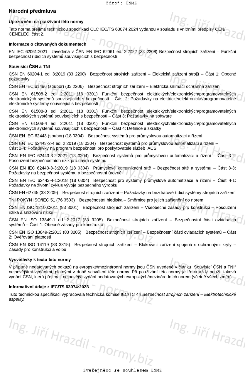 | Označení | ČSN CLC IEC/TS 63074 (332203) |