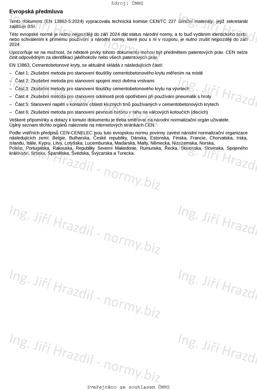 Cementobetonové kryty - Část 2: Zkušební metoda pro stanovení spojení mezi dvěma vrstvami