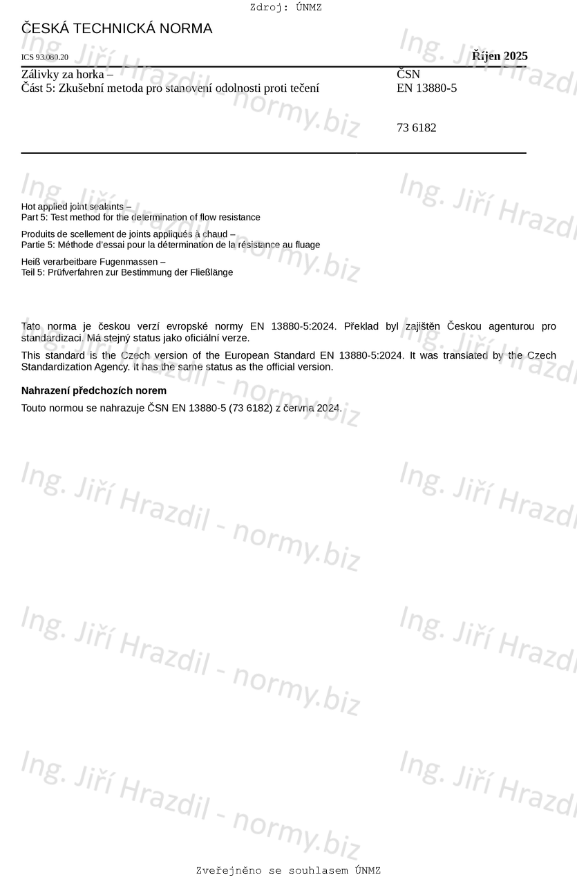 | Tato norma nahradila | ČSN EN 13880-5 (736182) z června 2024 |