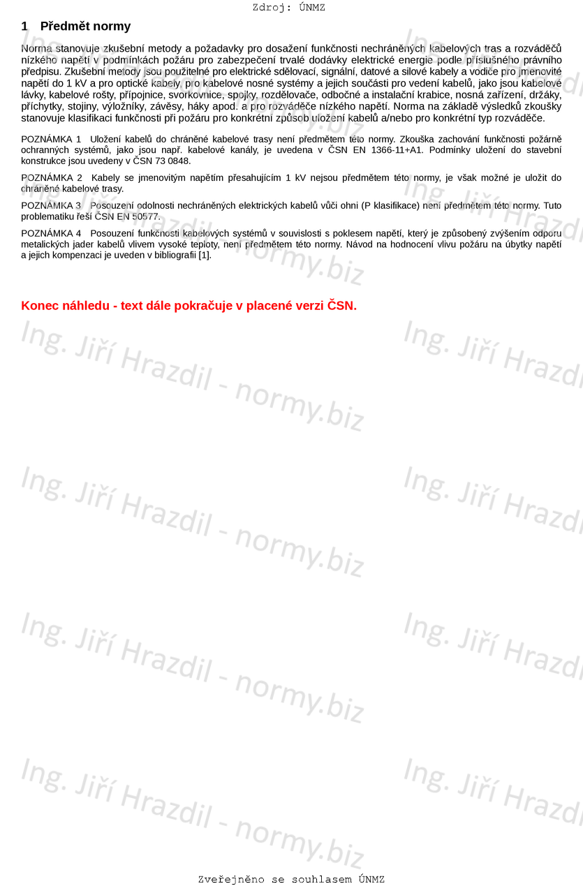 POZNÁMKA 4 - Posouzení funkčnosti kabelových systémů v souvislosti s poklesem napětí, který je způsobený zvýšením odporu metalických jader kabelů vlivem vysoké teploty, není předmětem této normy. Návod na hodnocení vlivu požáru na úbytky napětí a jejich kompenzaci je uveden v bibliografii [1].