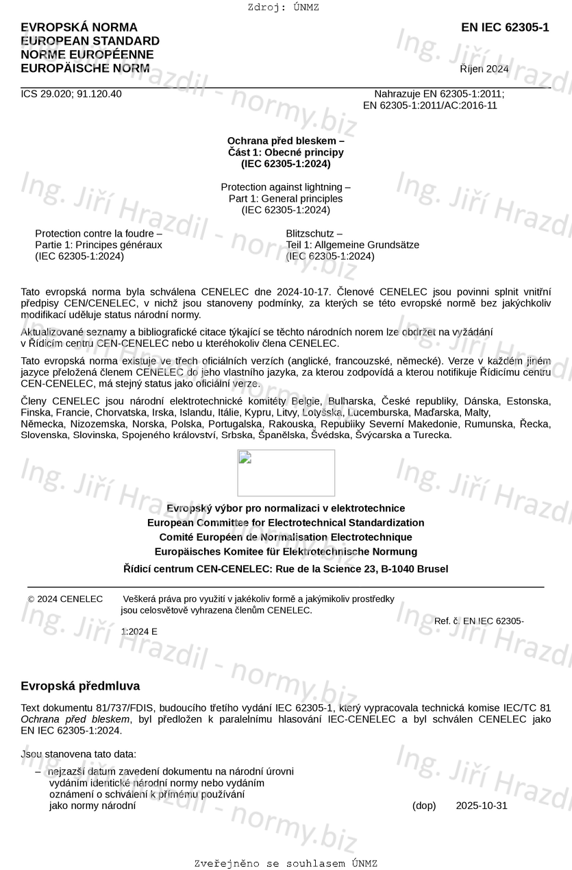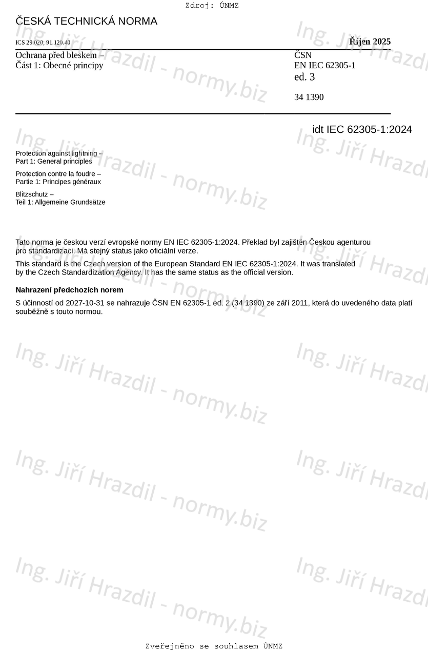| Označení | ČSN EN IEC 62305-1 ed. 3 (341390) |