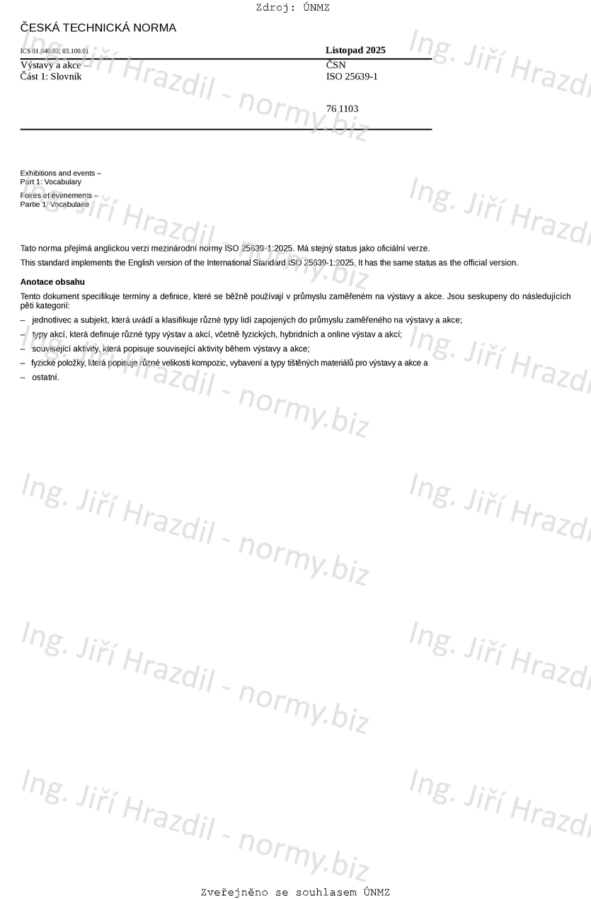 Tento dokument specifikuje termíny a definice, které se běžně používají v průmyslu zaměřeném na výstavy a akce. Jsou seskupeny do následujících pěti kategorií: