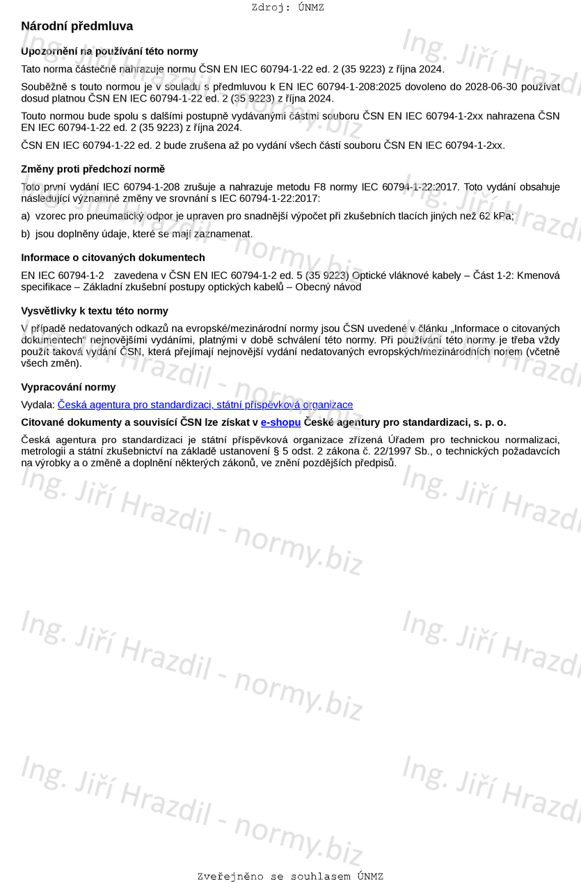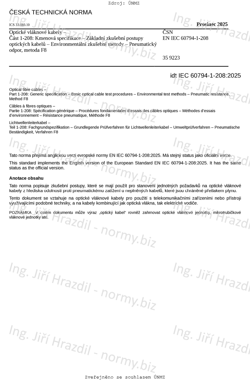 Označení ČSN EN IEC 60794-1-208 (359223)