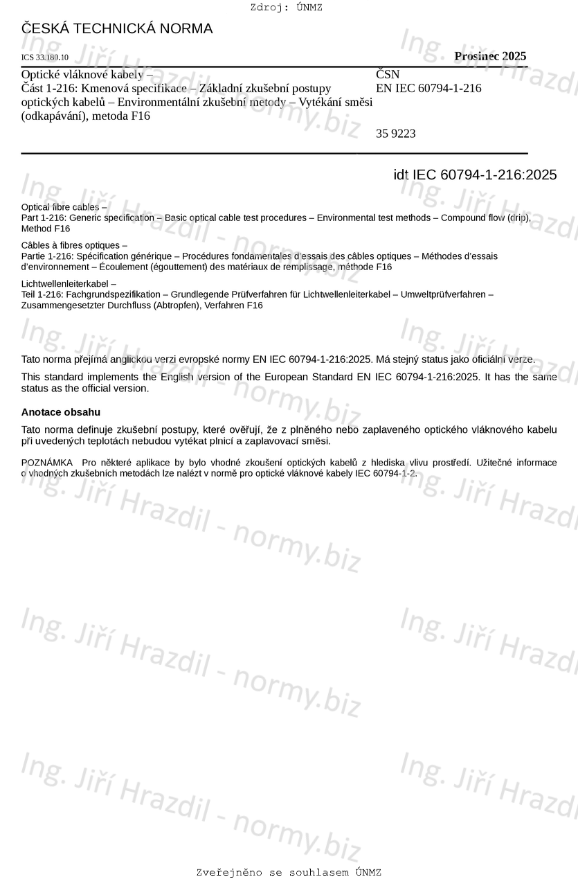 Označení ČSN EN IEC 60794-1-216 (359223)