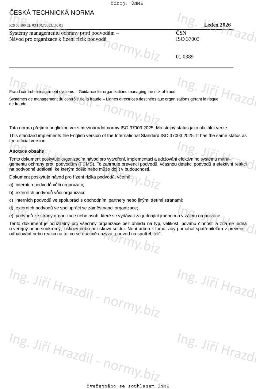 Tento dokument poskytuje organizacím návod pro vytvoření, implementaci a udržování efektivního systému managementu ochrany proti podvodům (FCMS). To zahrnuje prevenci podvodů, včasnou detekci podvodů a efektivní reakci na podvodné události, ke kterým došlo nebo může dojít v budoucnosti.