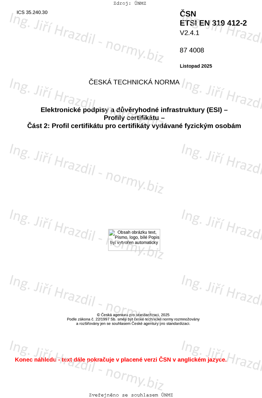 | Označení | ČSN ETSI EN 319 412-2 V2.4.1 (874008) |