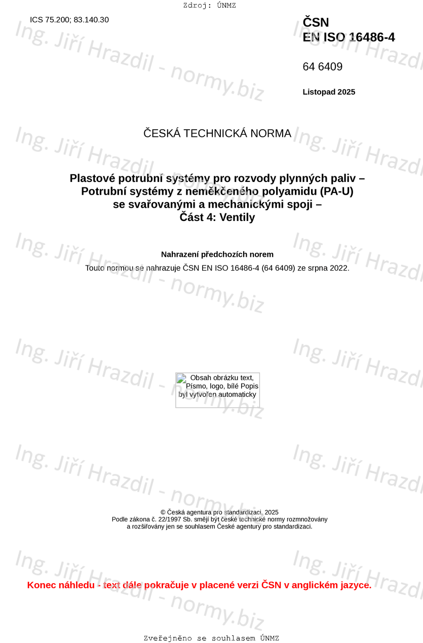 | Označení | ČSN EN ISO 16486-4 (646409) |
