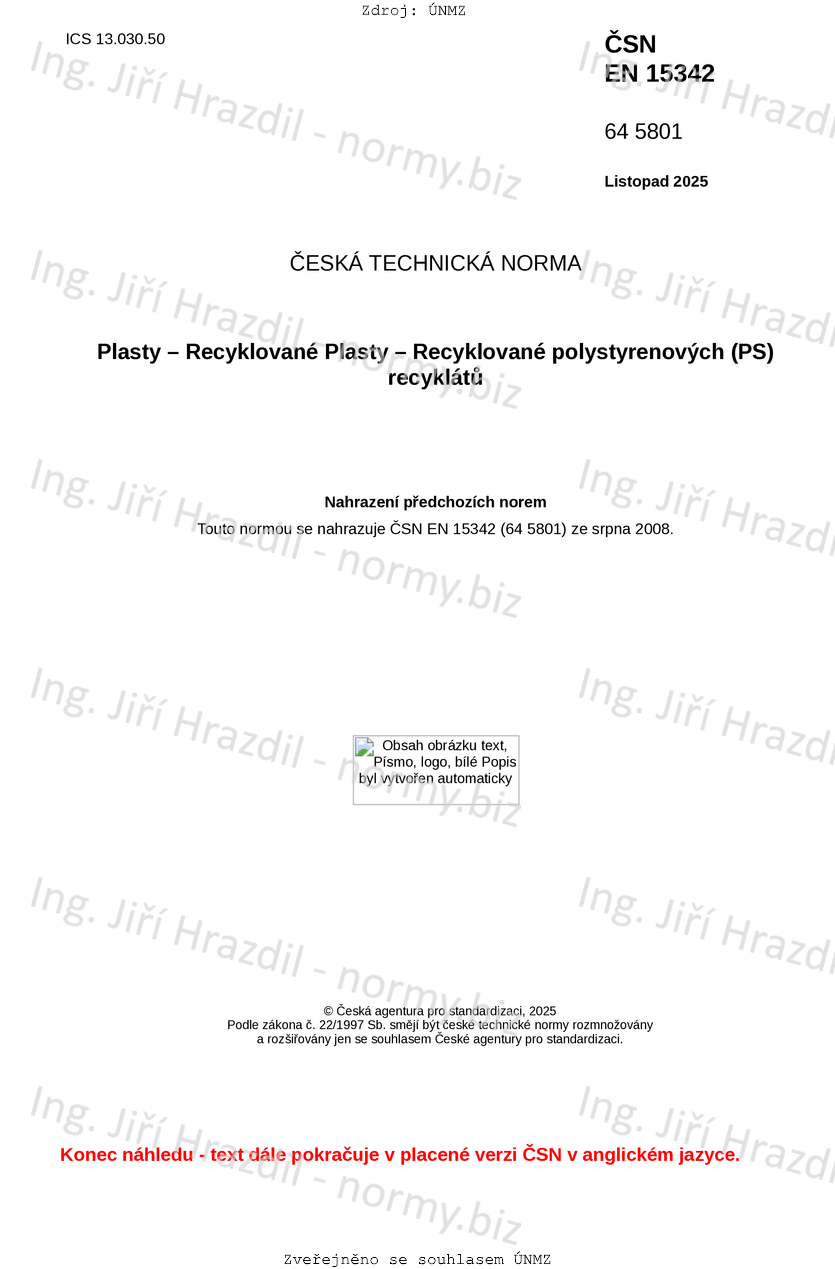 | Tato norma nahradila | ČSN EN 15342 (645801) z srpna 2008 |