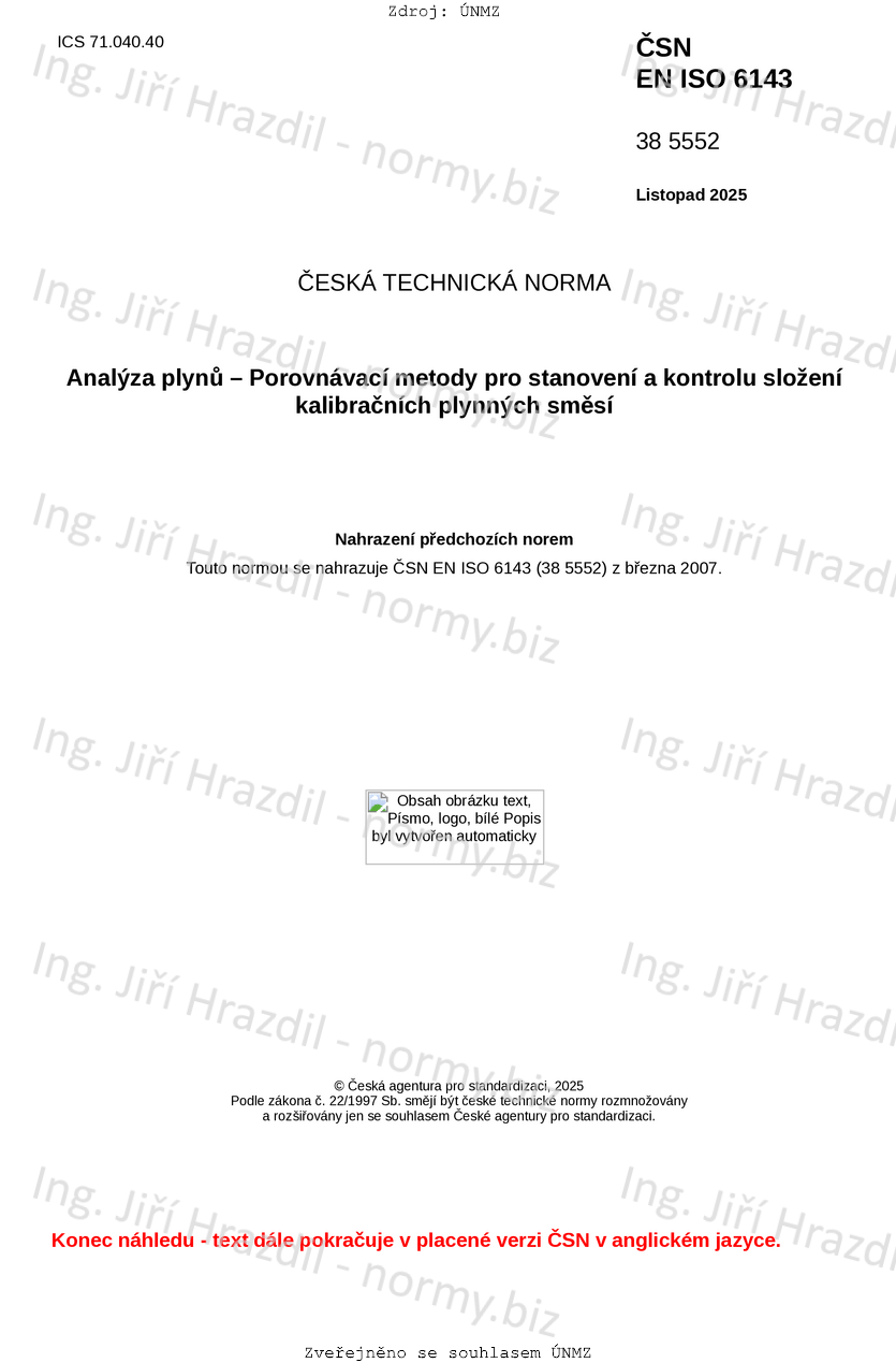 | Tato norma nahradila | ČSN EN ISO 6143 (385552) z března 2007 |