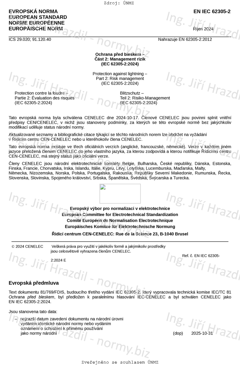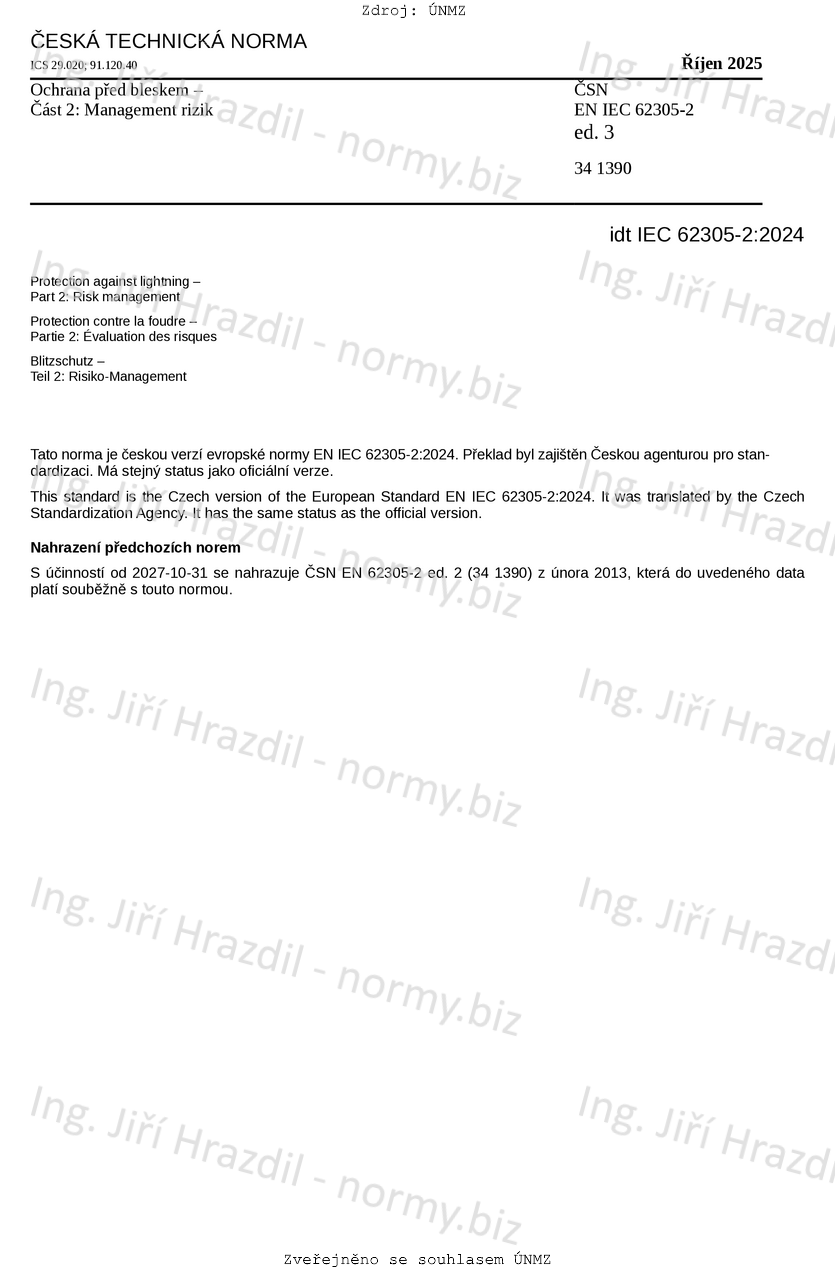| Označení | ČSN EN IEC 62305-2 ed. 3 (341390) |