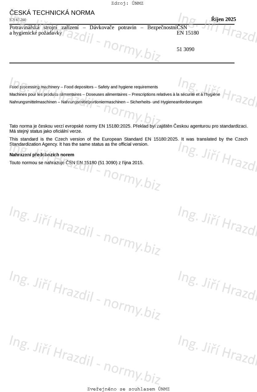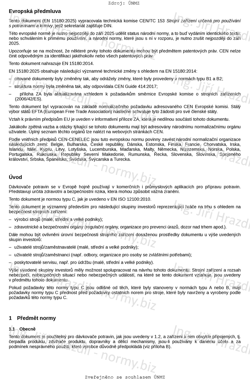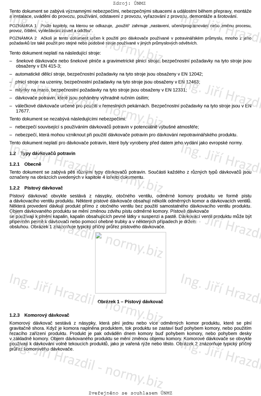 POZNÁMKA 2 - Ačkoli je tento dokument určen k použití pro dávkovače potravin používané v potravinářském průmyslu, mnoho z jeho požadavků lze také použít pro stejné nebo podobné stroje používané v jiných průmyslových odvětvích.