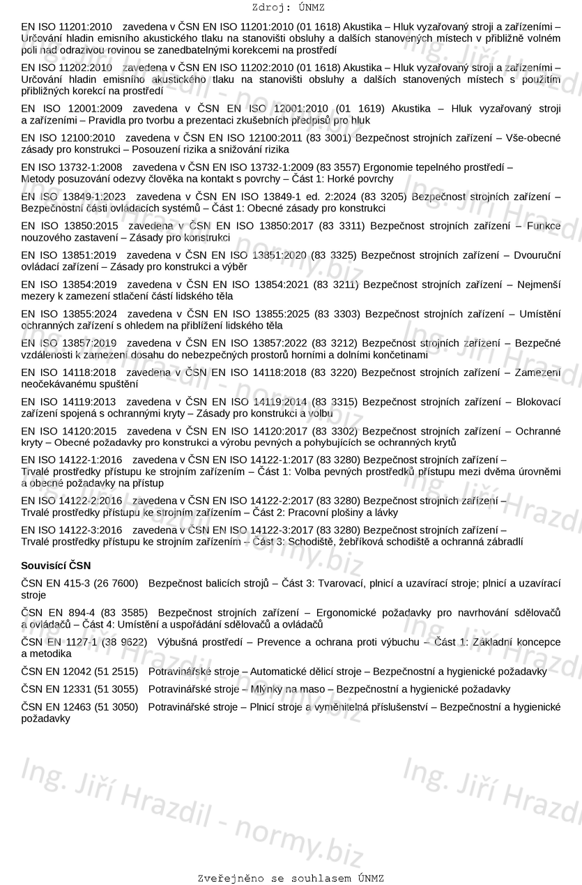 - plnicí stroje na uzeniny, bezpečnostní požadavky na tyto stroje jsou obsaženy v EN 12463;