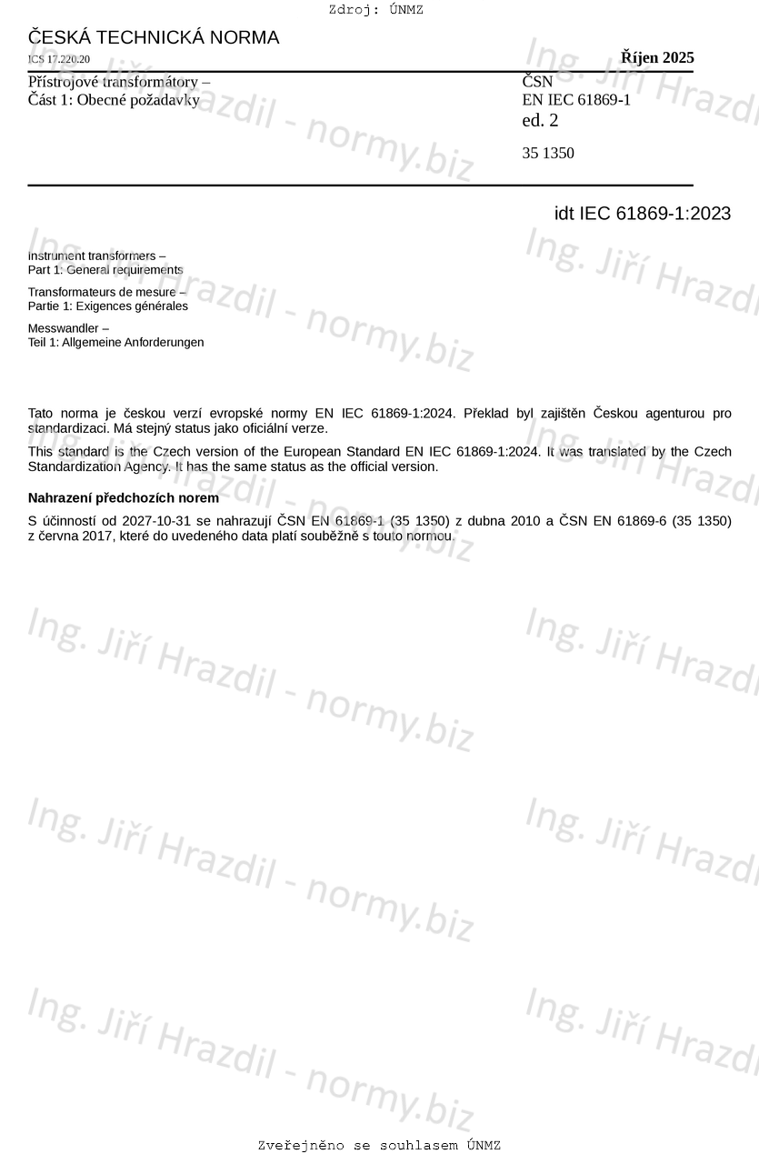 Označení | ČSN EN IEC 61869-1 ed. 2 (351350) |