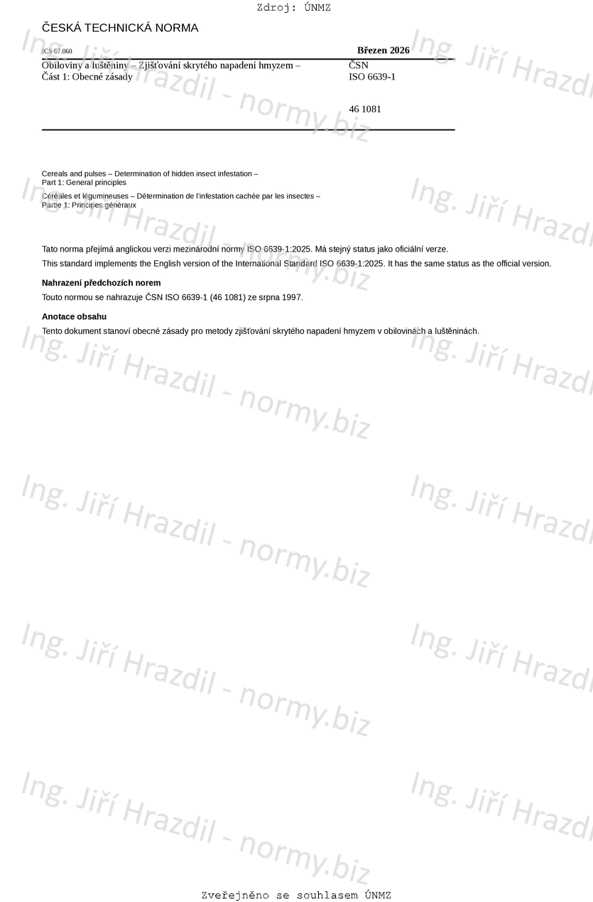 | Tato norma nahradila | ČSN ISO 6639-1 (461081) z srpna 1997 |