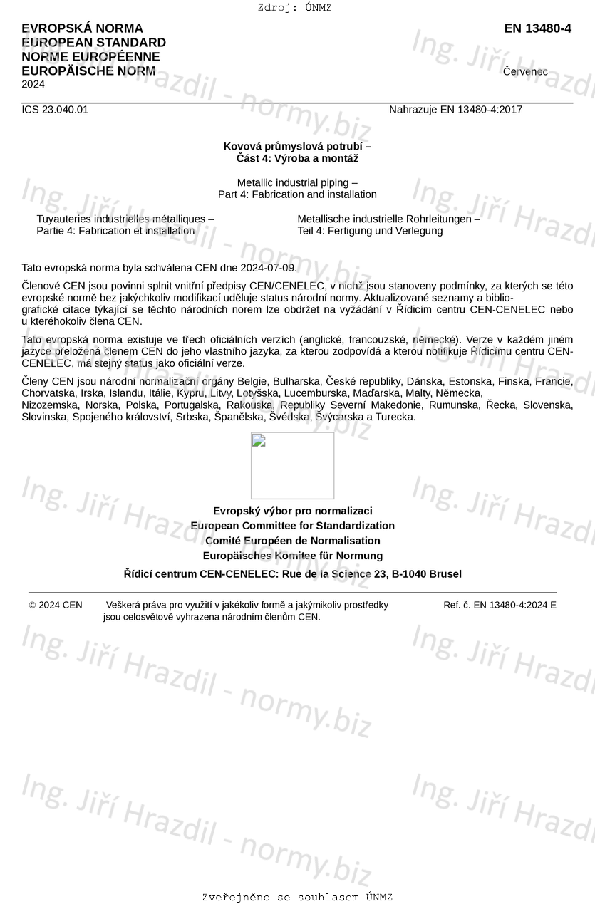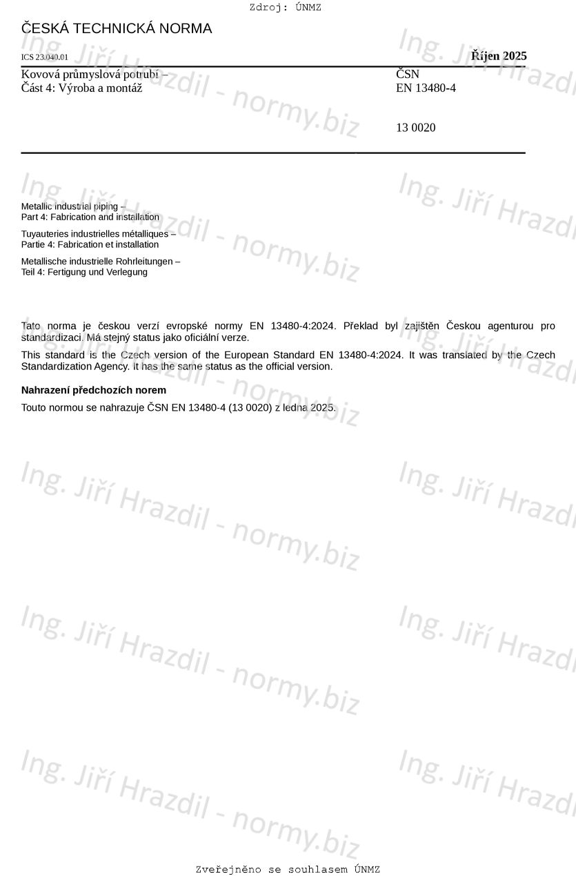 | Tato norma nahradila | ČSN EN 13480-4 (130020) z ledna 2025 |