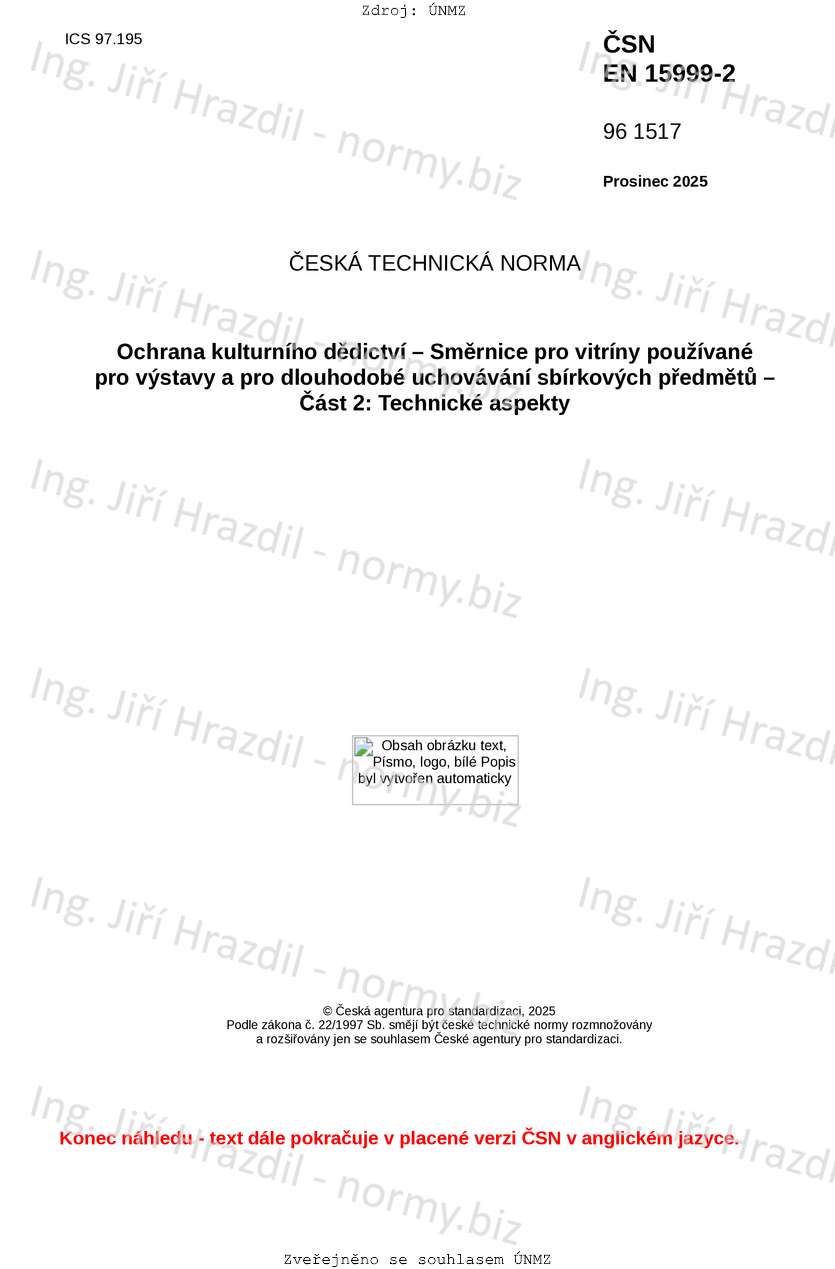 Ochrana kulturního dědictví - Směrnice pro vitríny používané pro výstavy a pro dlouhodobé uchovávání sbírkových předmětů - Část 1: Obecné požadavky