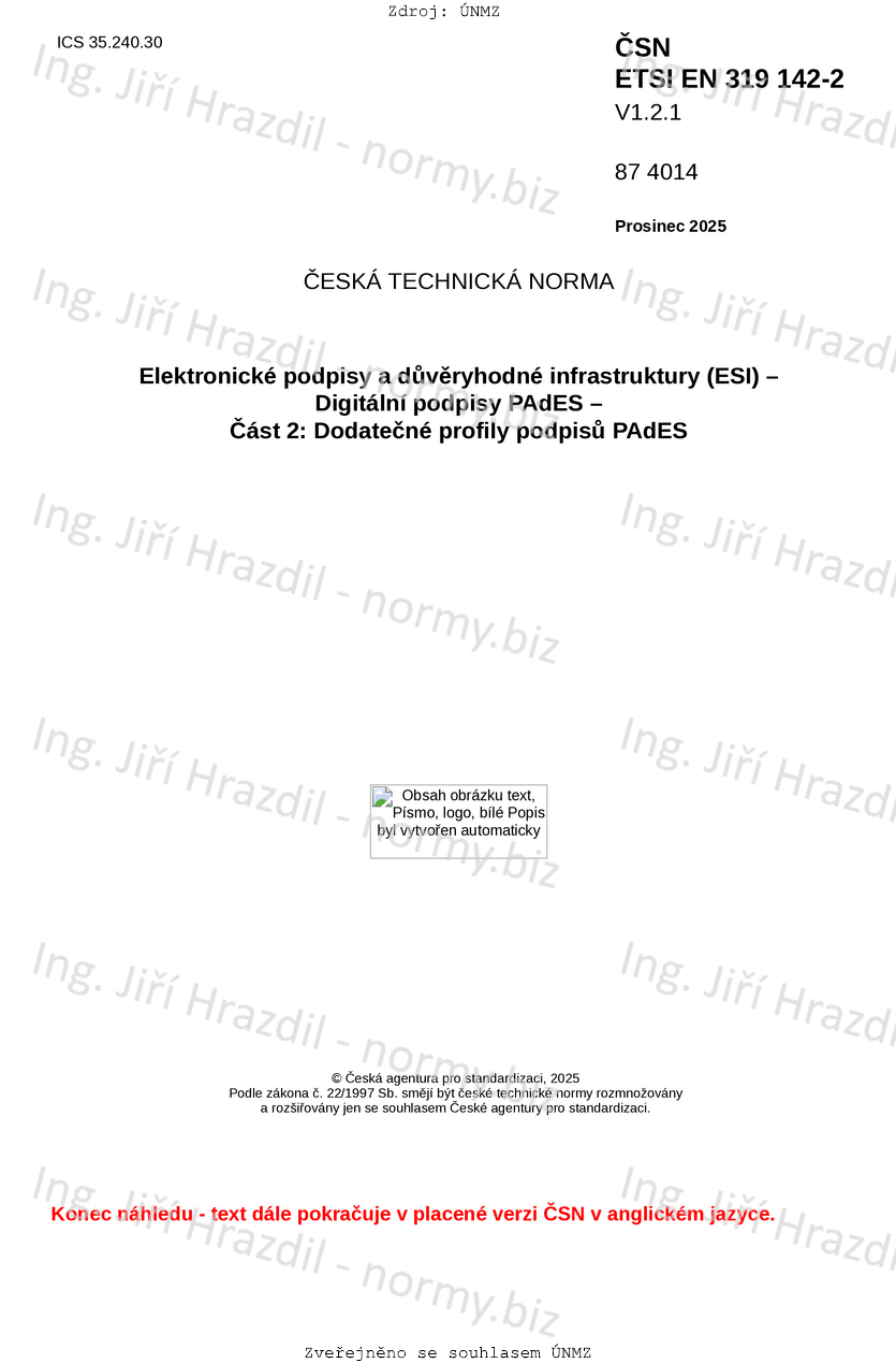 | Označení | ČSN ETSI EN 319 142-2 V1.2.1 (874014) |