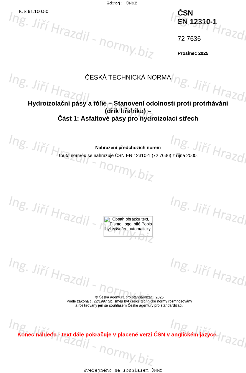 Hydroizolační pásy a fólie - Stanovení odolnosti proti protrhávání - Část 2: Plastové a pryžové pásy a fólie pro hydroizolaci střech