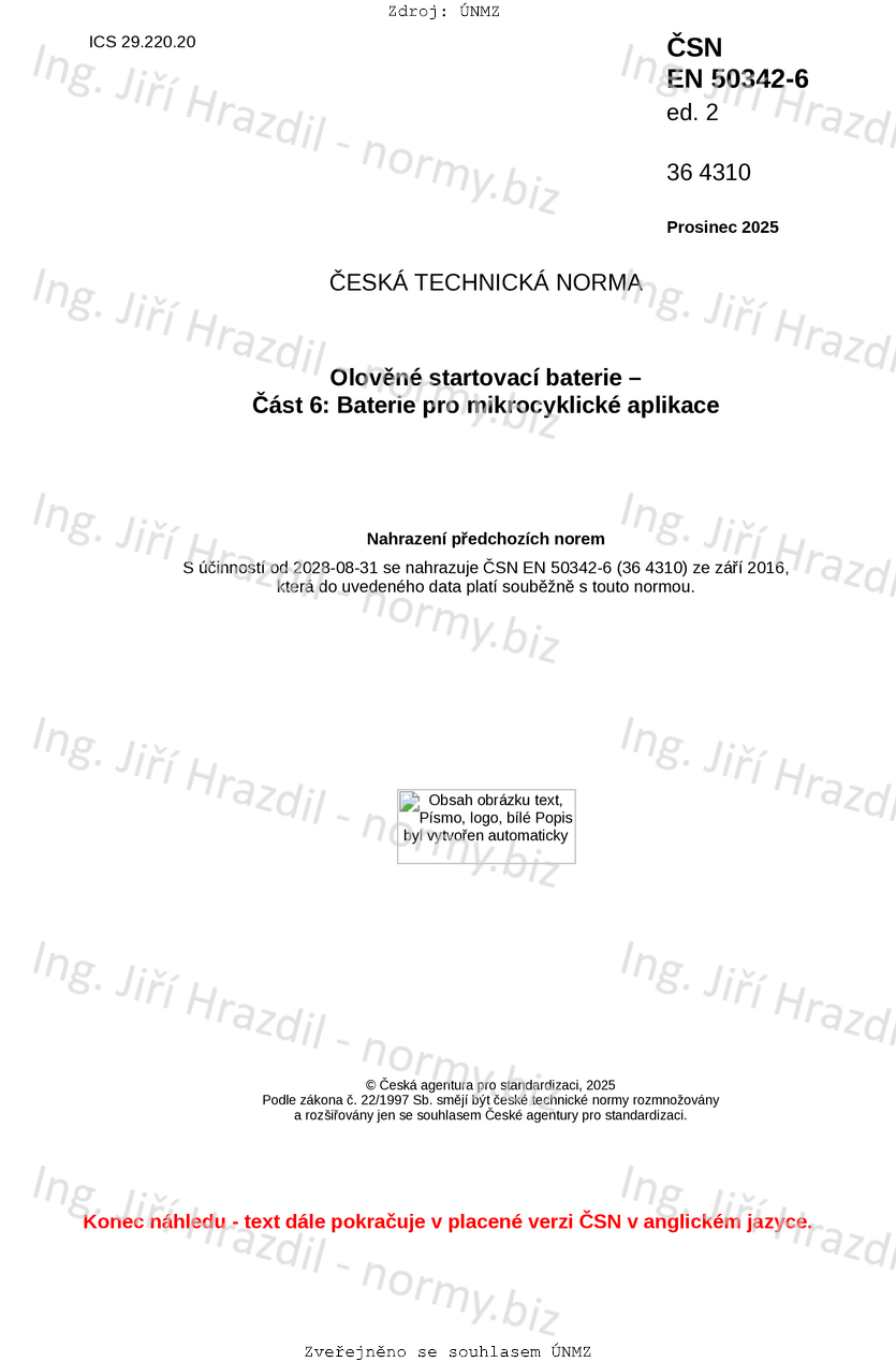 | Označení | ČSN EN 50342-6 ed. 2 (364310) |