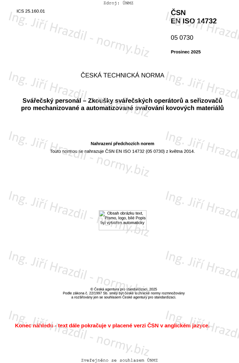| Tato norma nahradila | ČSN EN ISO 14732 (050730) z května 2014 |