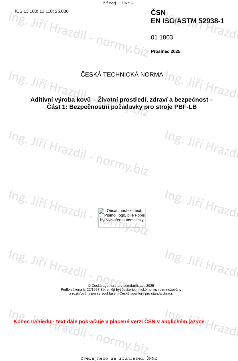 | Označení | ČSN EN ISO/ASTM 52938-1 (011803) |