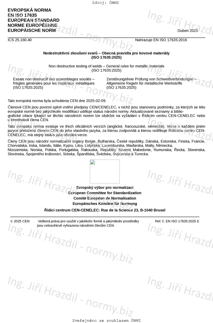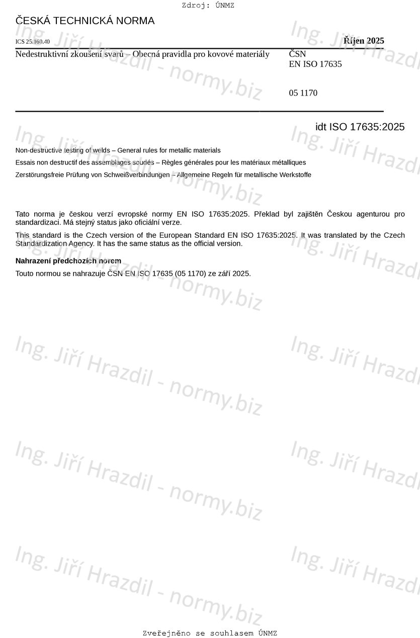 Tato norma nahradila | ČSN EN ISO 17635 (051170) z září 2025 |