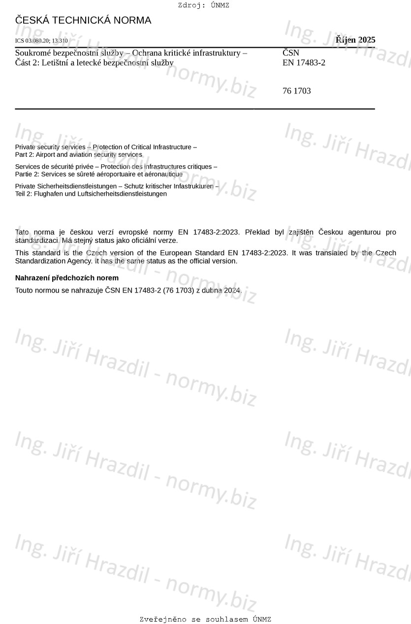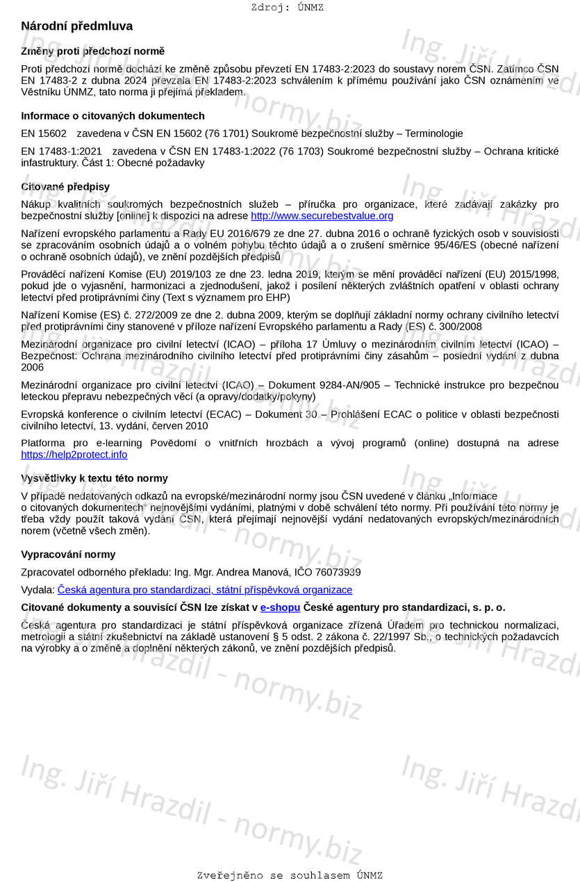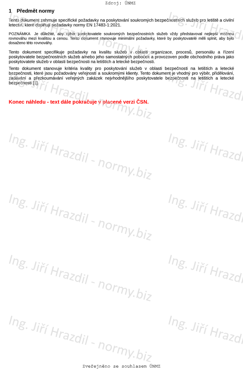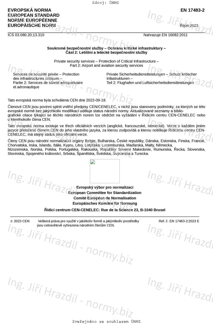 Tento dokument zahrnuje specifické požadavky na poskytování soukromých bezpečnostních služeb pro letiště a civilní letectví, které doplňují požadavky normy EN 17483-1:2021.