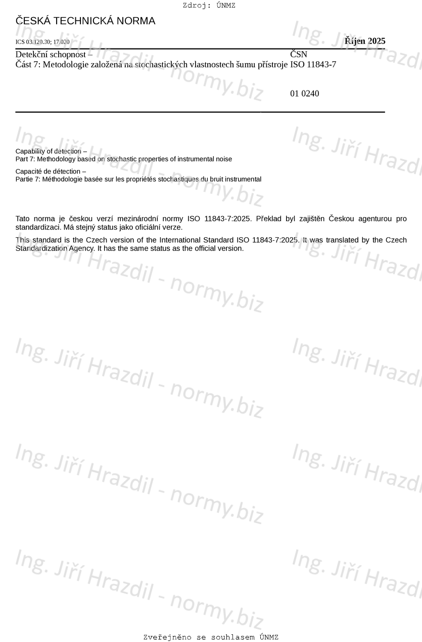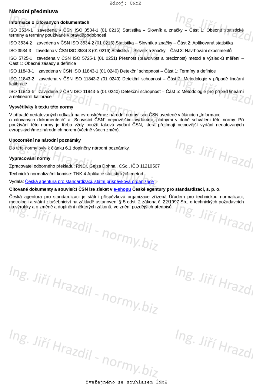 Detekční schopnost - Část 3: Metodologie pro stanovení kritické hodnoty odezvy bez použití dat z kalibrace