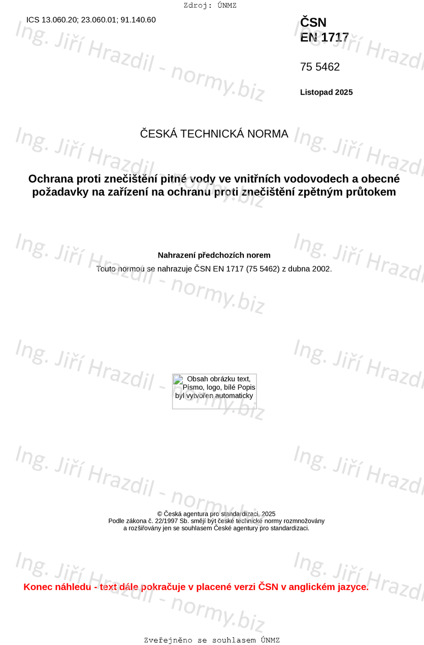 | Tato norma nahradila | ČSN EN 1717 (755462) z dubna 2002 |