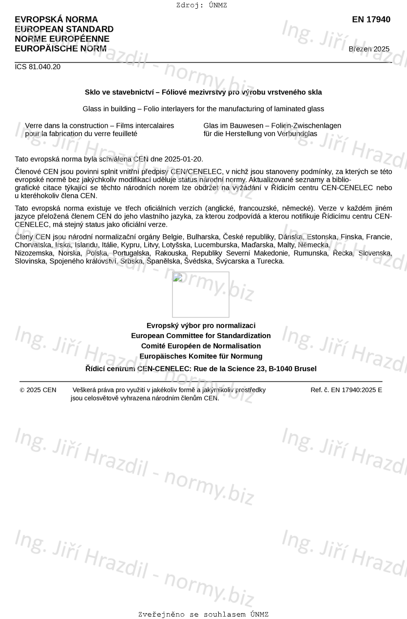 a tepelné vlastnosti fóliové mezivrstvy pro výrobu vrstveného skla a vrstveného bezpečnostního skla pro použití v budovách a konstrukcích a definuje jejich obecná kritéria kvality.