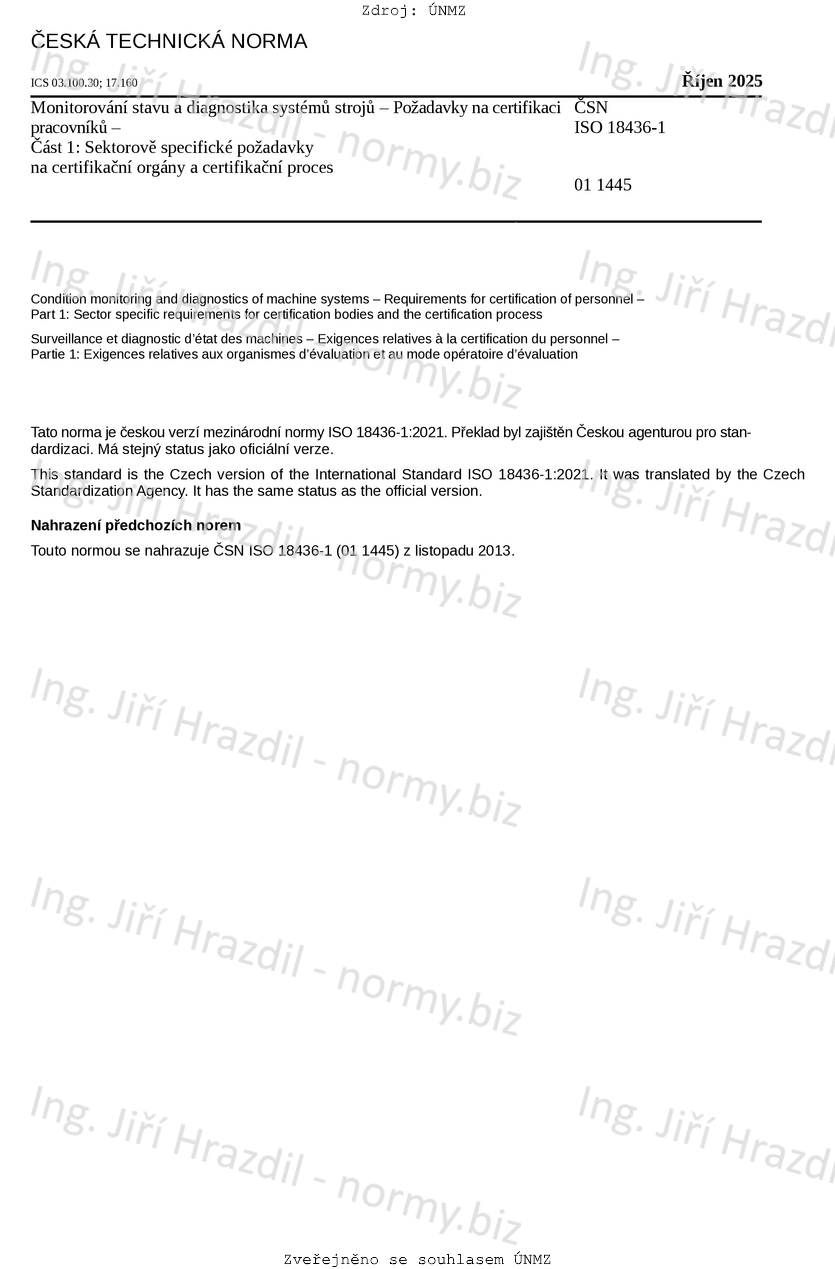 Tato norma nahradila | ČSN ISO 18436-1 (011445) z listopadu 2013 |