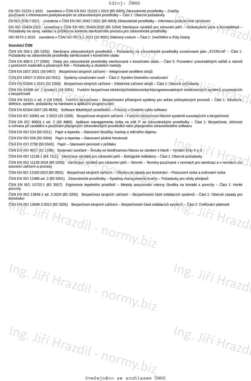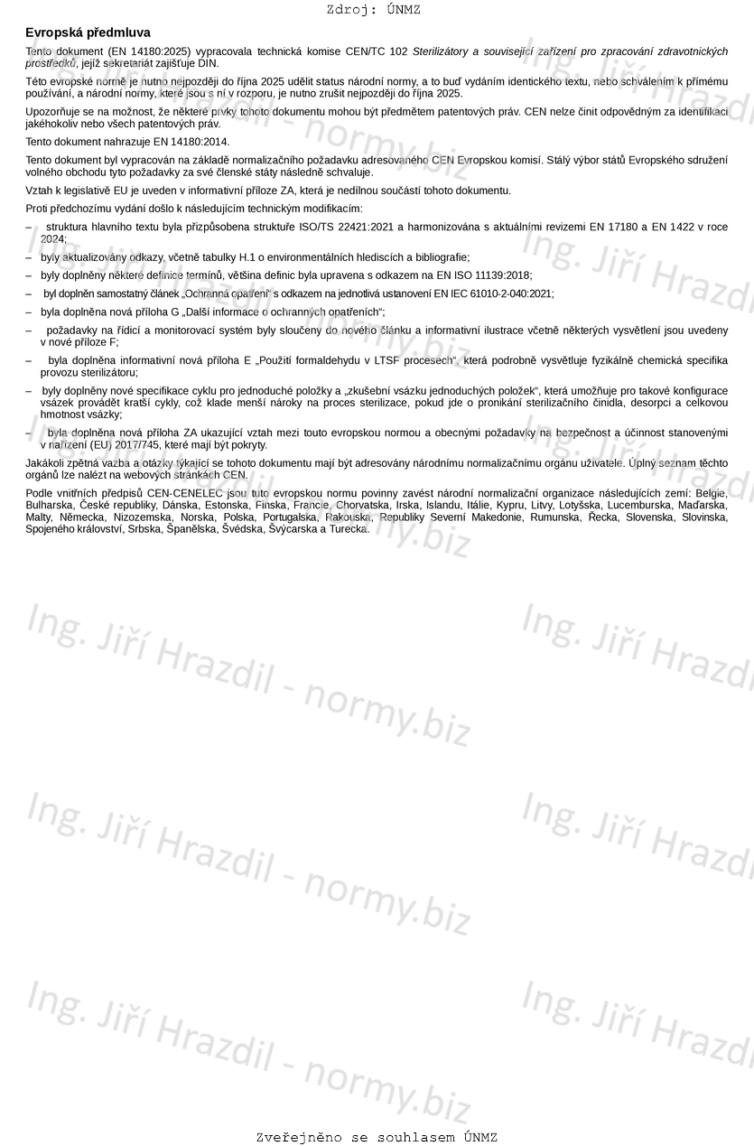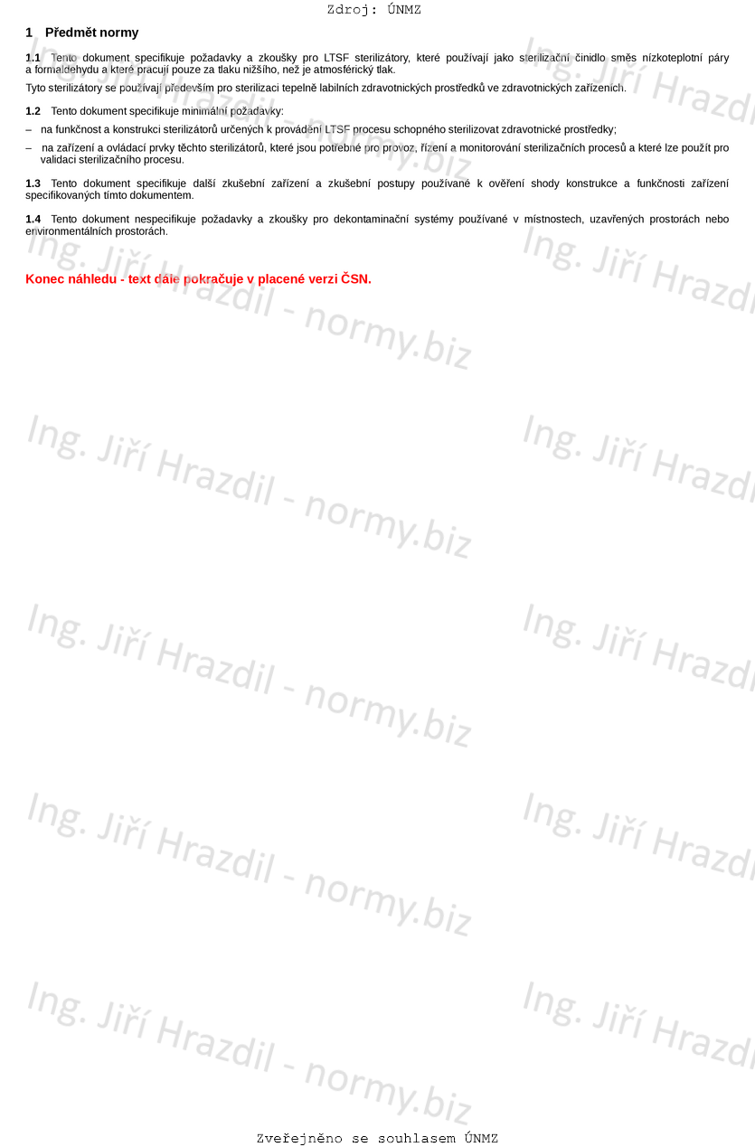 Tato norma specifikuje požadavky a zkoušky pro sterilizátory, které používají jako sterilizační činidlo směs nízkoteplotní páry a formaldehydu (LTSF) a které pracují za tlaku nižšího, než je atmosférický tlak. LTSF sterilizátory se používají pro sterilizaci tepelně labilních zdravotnických prostředků ve zdravotnických zařízeních i při komerční výrobě zdravotnických prostředků. Tato norma byla proti předchozímu vydání z r. 2014 rozsáhle technicky revidována. Norma pokrývá otázky bezpečnosti při sterilizaci formaldehydem z hlediska výsledných sterilizovaných zdravotnických prostředků, obsluhy sterilizátorů i možného dopadu na životní prostředí.
