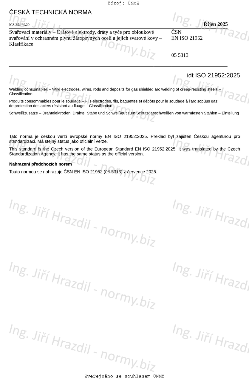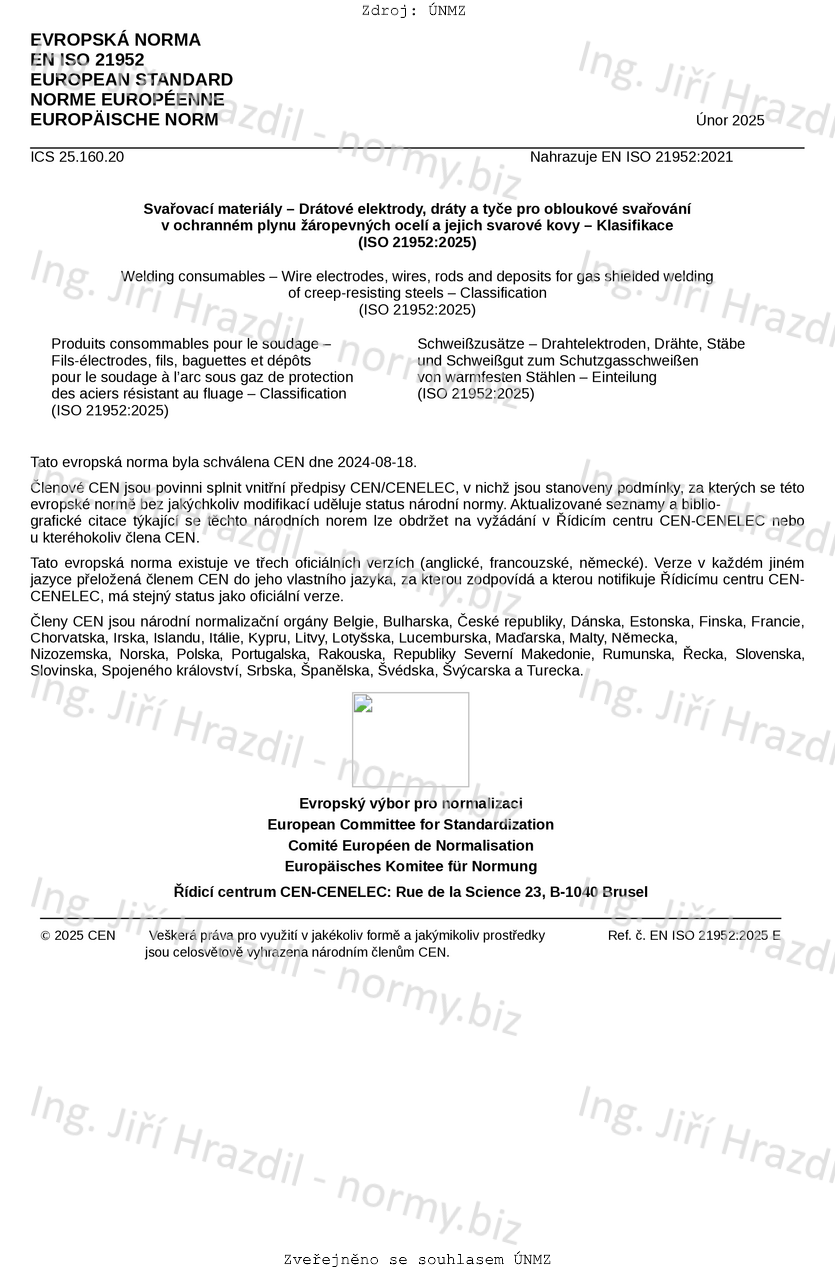 Norma ČSN EN ISO 21952 specifikuje požadavky na klasifikaci drátových elektrod, drátů a tyčí pro obloukové svařování kovů v ochranném plynu a svařování wolframovou elektrodou v inertním plynu žáruvzdorných ocelí a jejich návarů ve stavu po svařování nebo po tepelném zpracování po svařování. Jedna drátová elektroda může být zkoušena a klasifikována s různými ochrannými plyny.