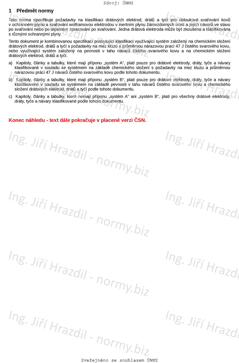 Norma je kombinovanou specifikací poskytující klasifikaci využívající systém založený na chemickém složení drátových elektrod, drátů a tyčí s požadavky na mez kluzu a průměrnou nárazovou prací 47 J čistého svarového kovu, nebo využívající systém založený na pevnosti v tahu návarů čistého svarové-ho kovu a na chemickém složení drátových elektrod, drátů a tyčí.