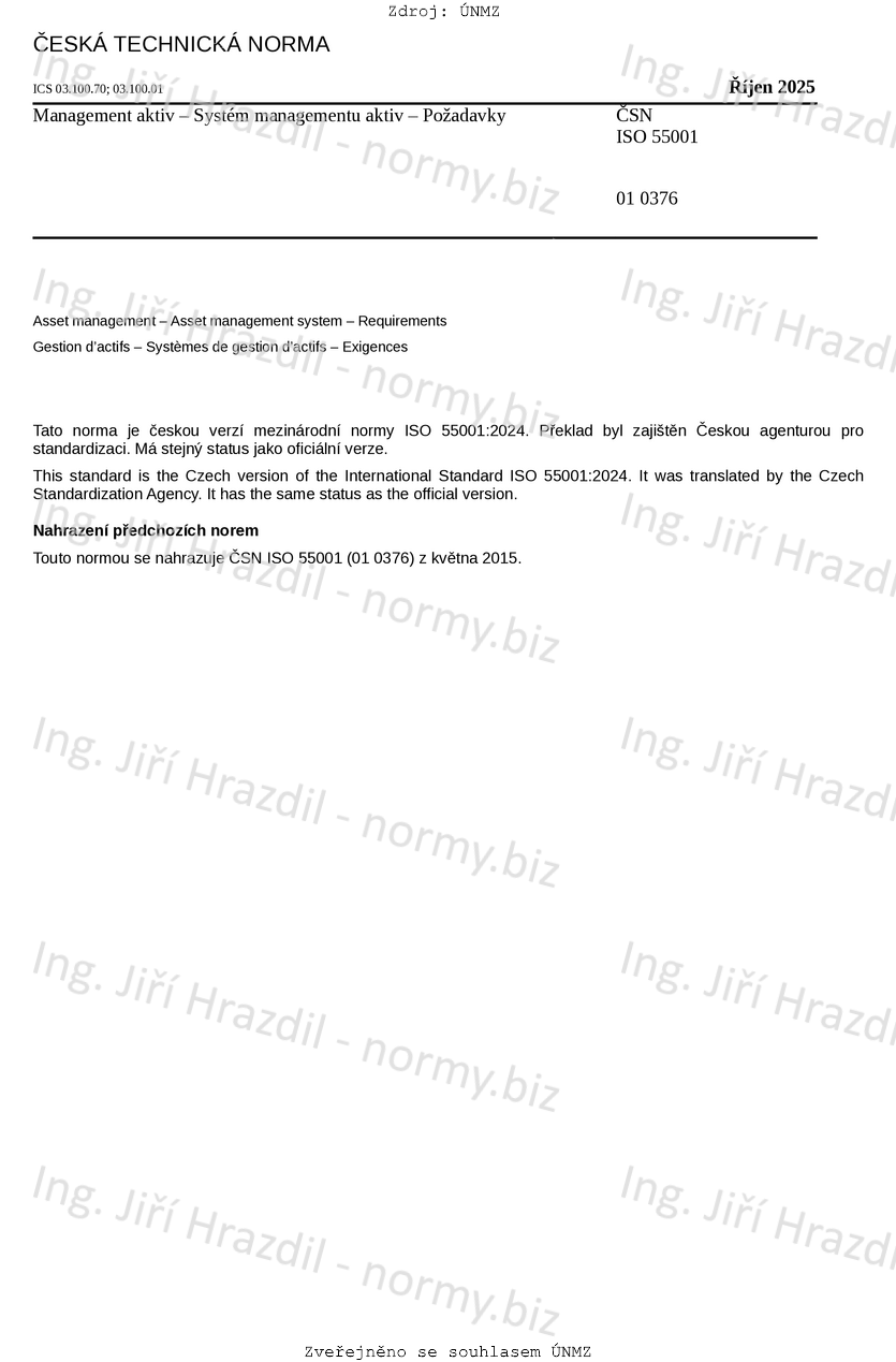 Označení | ČSN ISO 55001 (010376) |