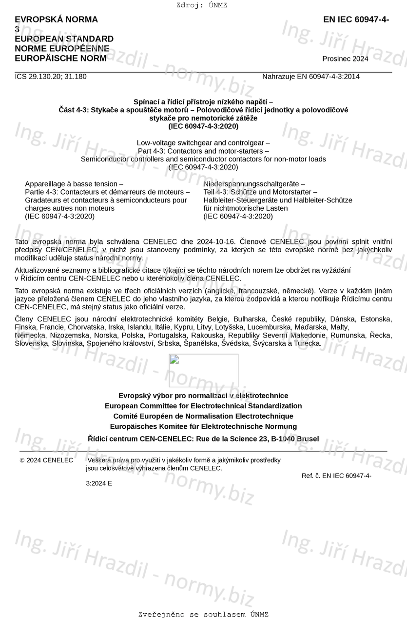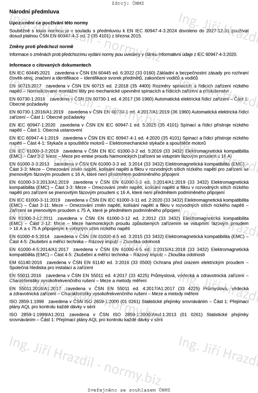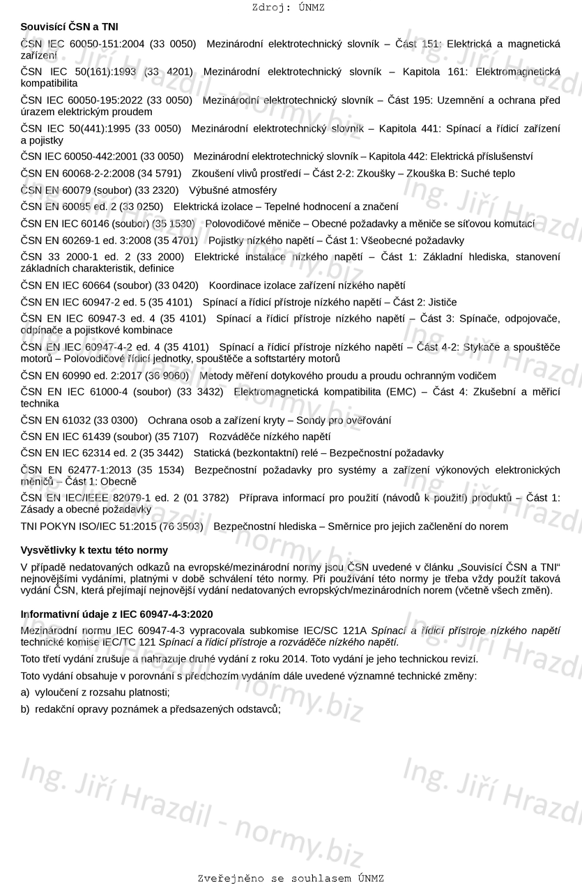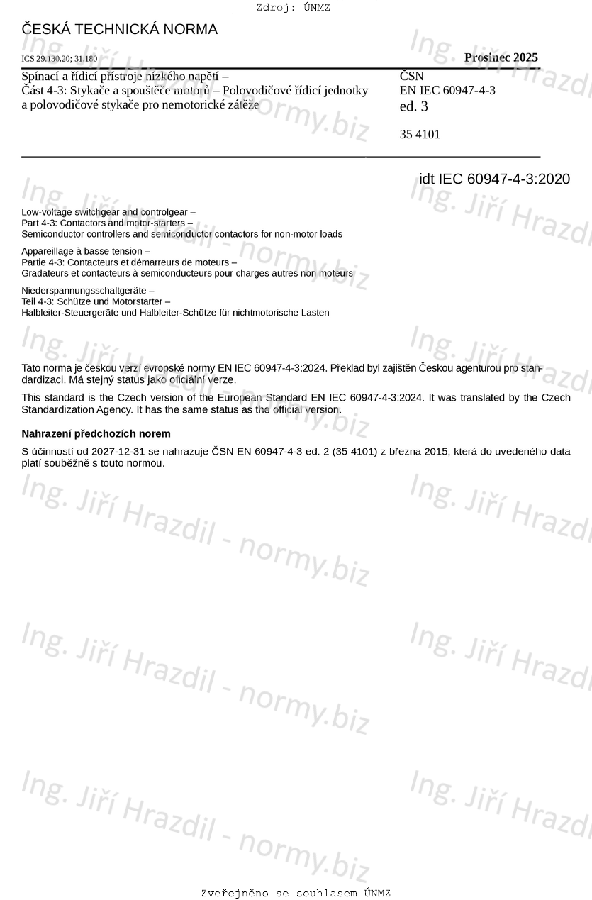 | Označení | ČSN EN IEC 60947-4-3 ed. 3 (354101) |