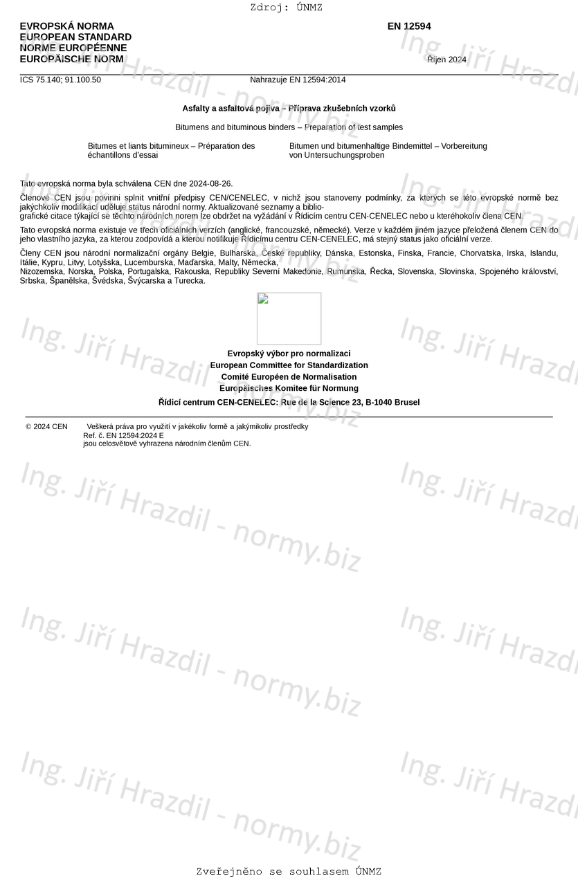 | Tato norma nahradila | ČSN EN 12594 (657005) z února 2025 |