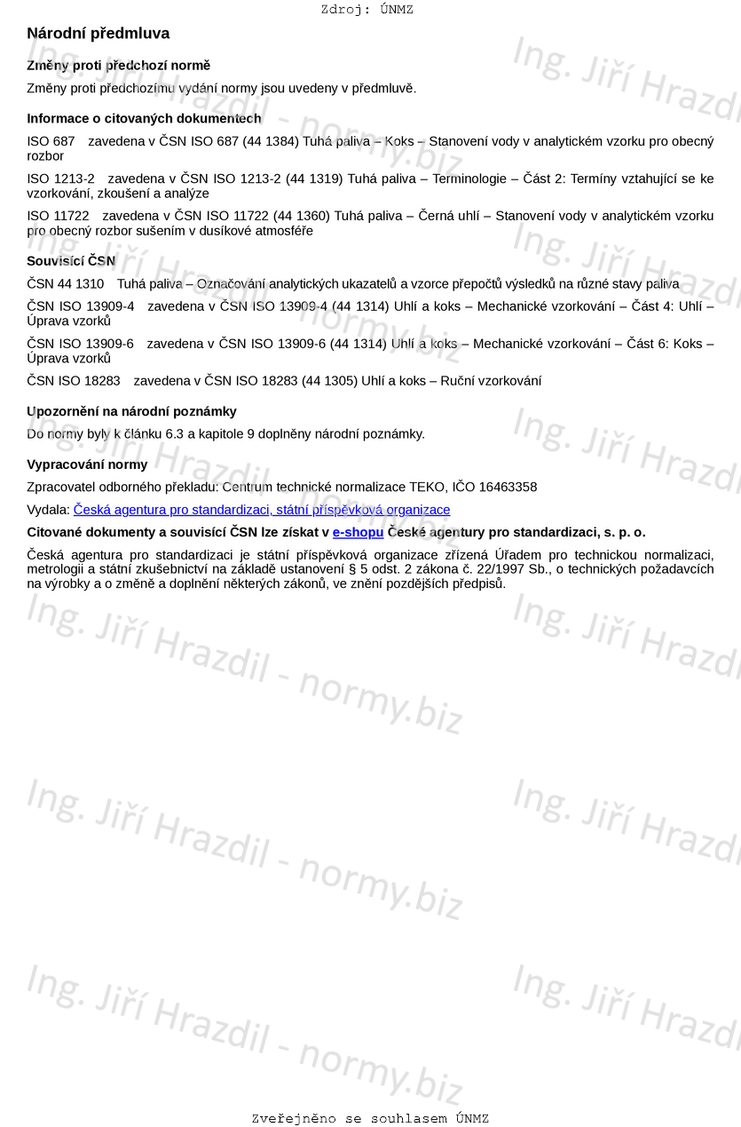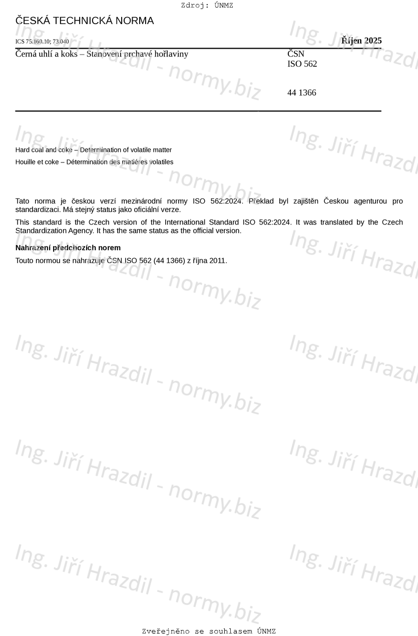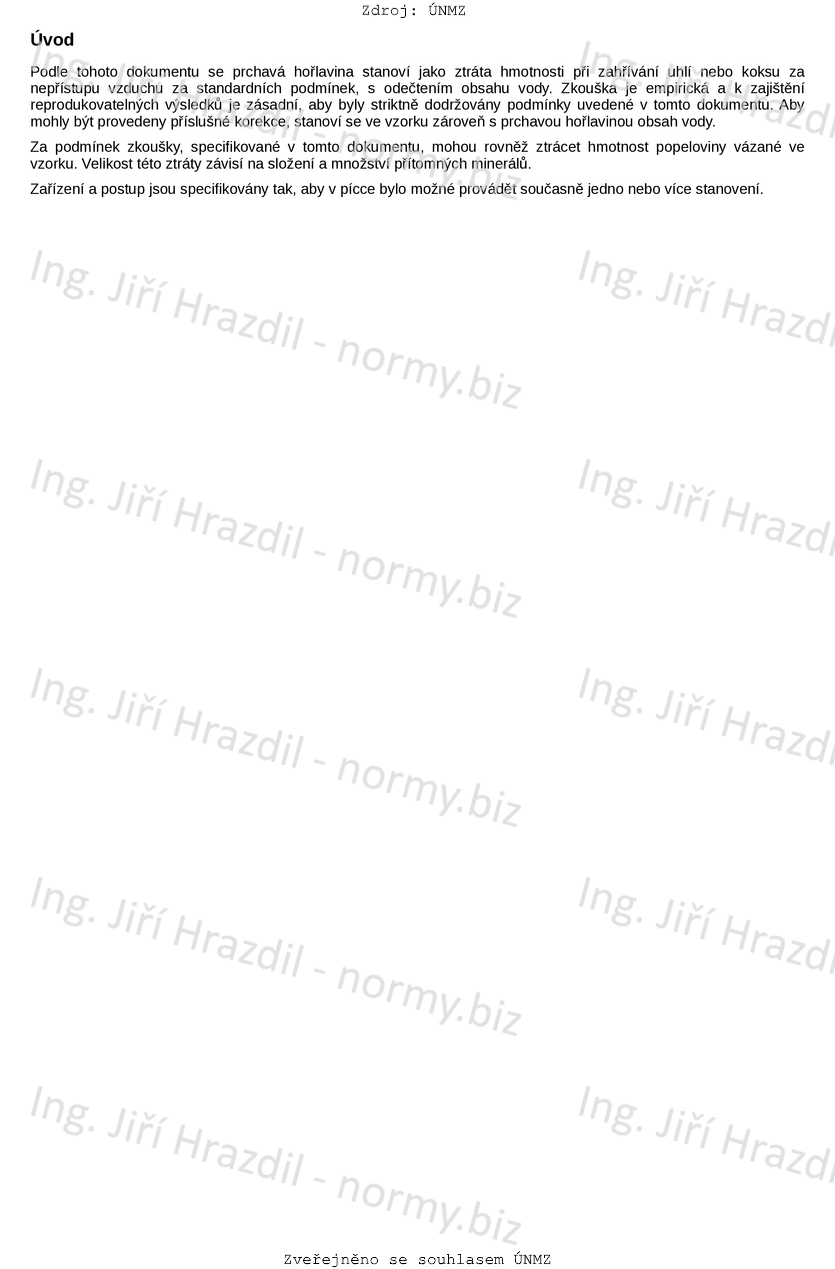 Tento dokument specifikuje metodu stanovení prchavé hořlaviny černého uhlí a koksu. Nelze jej používat pro hnědá uhlí a lignity.