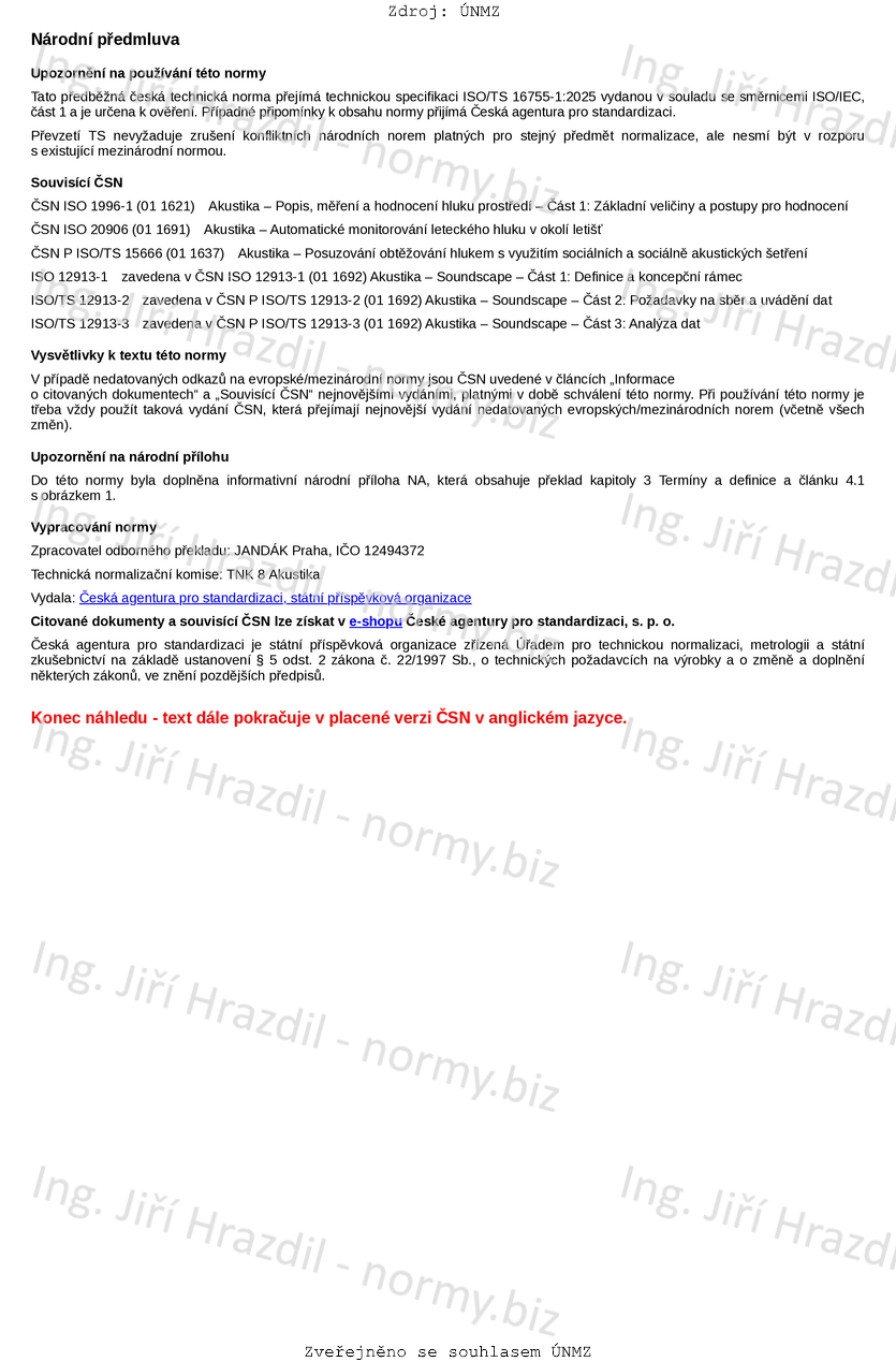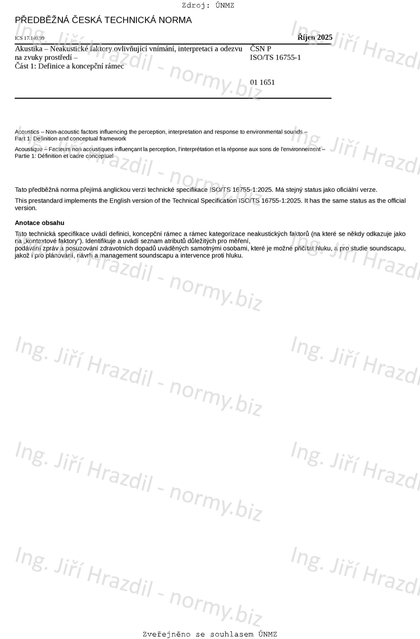 Tato technická specifikace uvádí definici, koncepční rámec a rámec kategorizace neakustických faktorů (na které se někdy odkazuje jako na "kontextové faktory"). Identifikuje a uvádí seznam atributů důležitých pro měření, podávání zpráv a posuzování zdravotních dopadů uváděných samotnými osobami, které je možné přičítat hluku, a pro studie soundscapu, jakož i pro plánování, návrh a management soundscapu a intervence proti hluku.