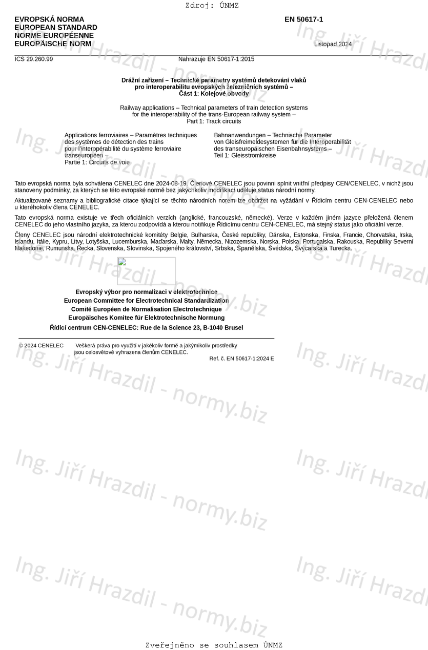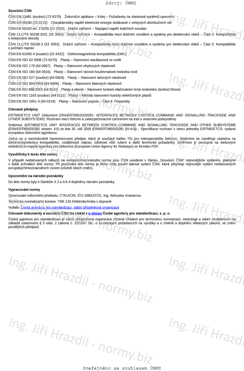 Tento dokument specifikuje technické parametry kolejových obvodů ve vztahu s mezními hodnotami vyzařování rušivého proudu pro RST v podmínkách interoperability definované Frekvenčním managementem uvedeném v dokumentu ERA/ERTMS/033281 v4.0. Meze kompatibility mezi kolejovými vozidly a kolejovými obvody, kterými se tento dokument řídí, umožňují zohlednit známé rušivé jevy spojené s trakčním napájením včetně související ochrany (přepětí, zkratový proud a základní přechodné jevy, jako je nárazový proud a výpadky napájení) a další známé zdroje rušení.