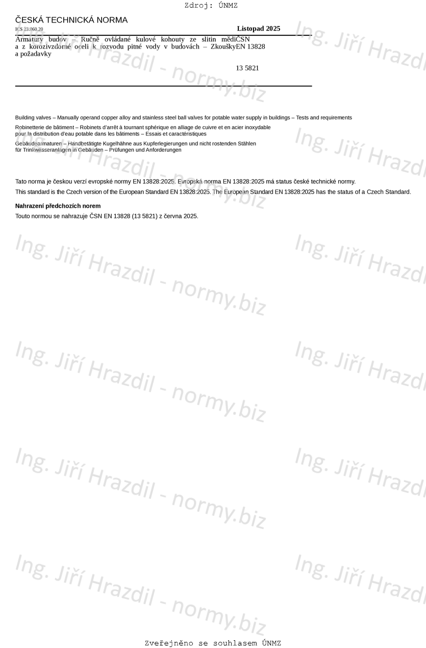 | Tato norma nahradila | ČSN EN 13828 (135821) z června 2025 |