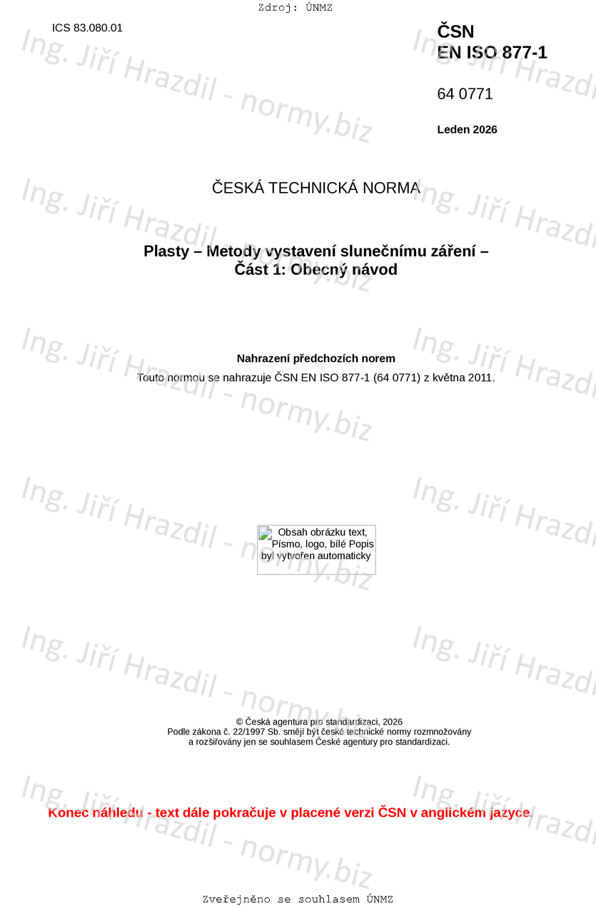 | Tato norma nahradila | ČSN EN ISO 877-1 (640771) z května 2011 |