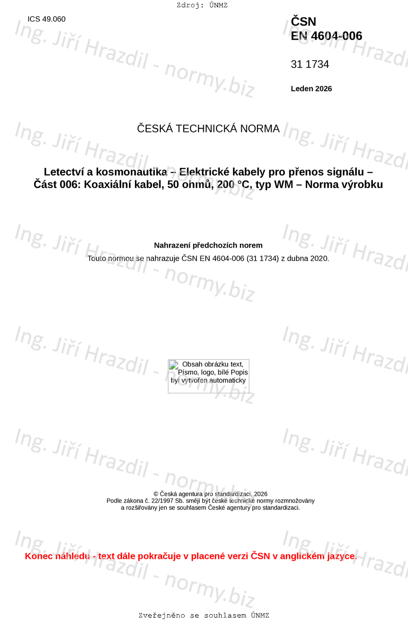 | Tato norma nahradila | ČSN EN 4604-006 (311734) z dubna 2020 |